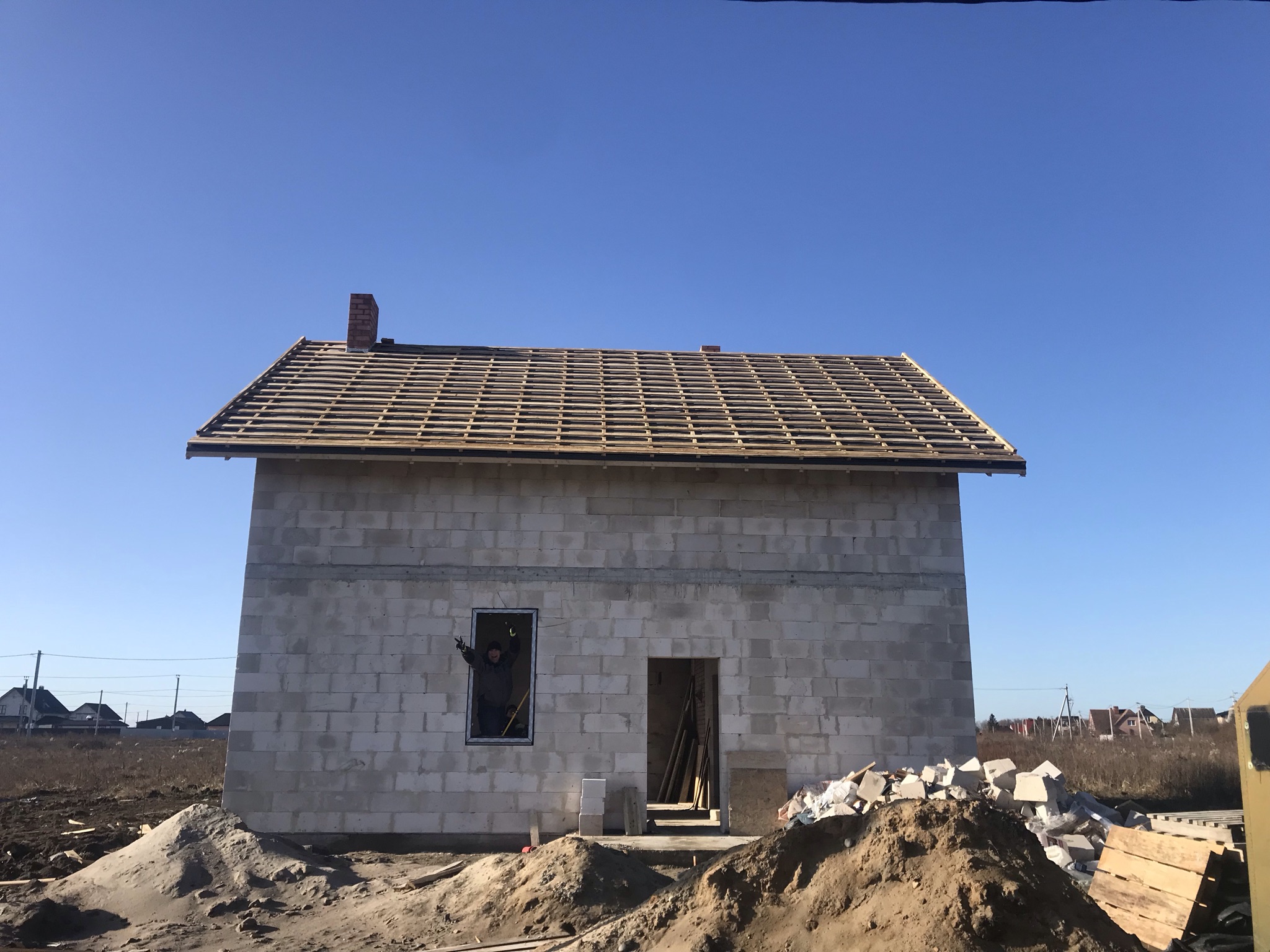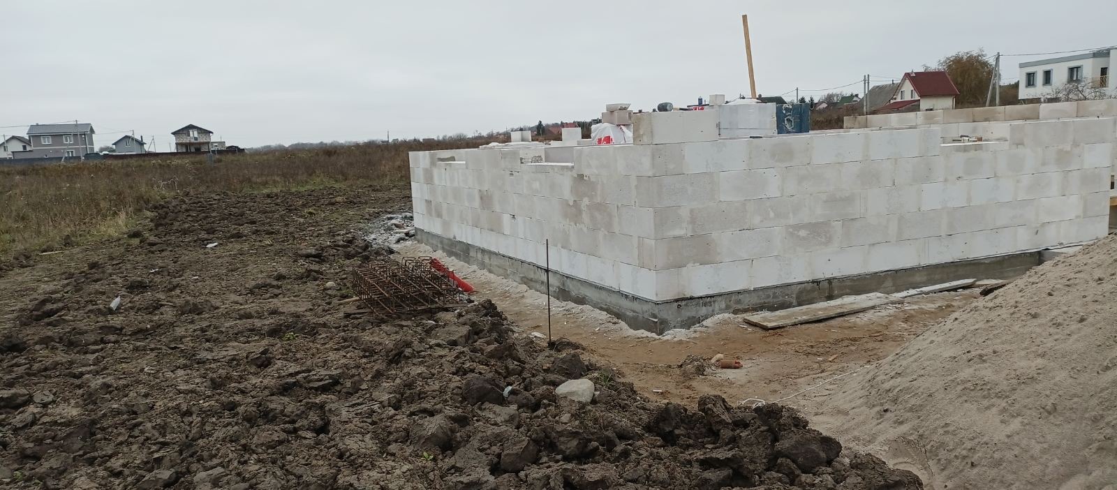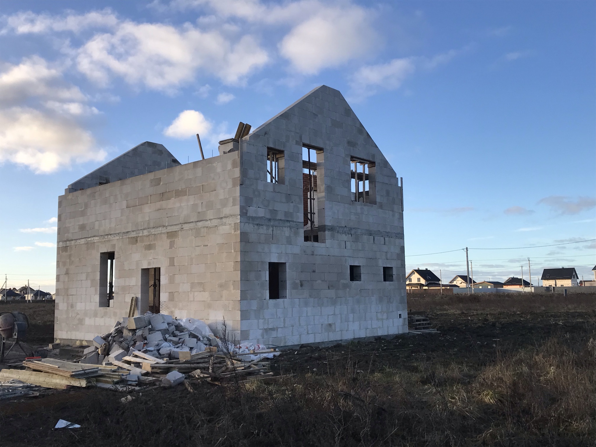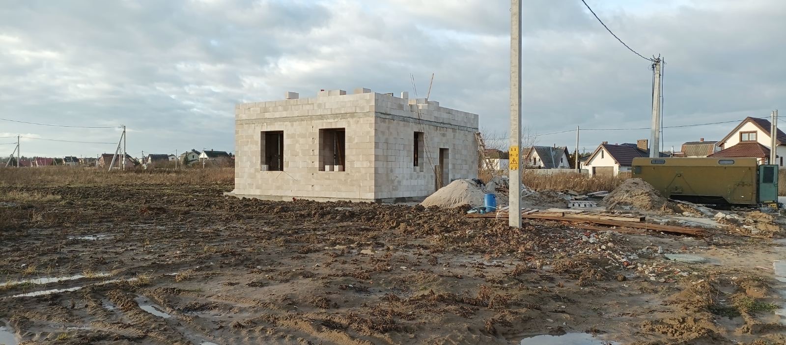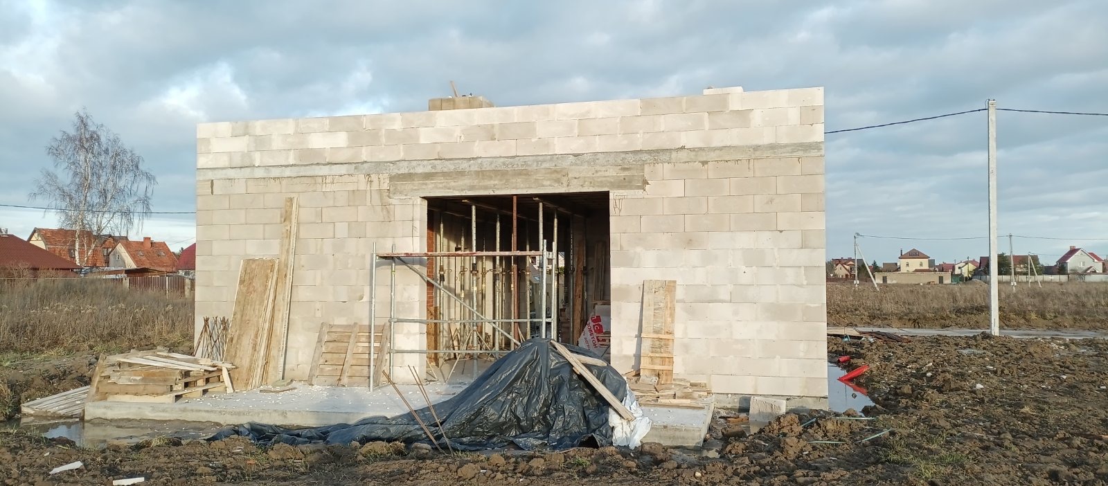 Приступили в межсезонье к строительству небольшого загородного дома в п. Каменка. Фундаментная плита была уже залита, поэтому начали с кладки стен. Закончили строительство "коробки" в конце февраля 2023г. Летом закончили фасад и благоустройство.