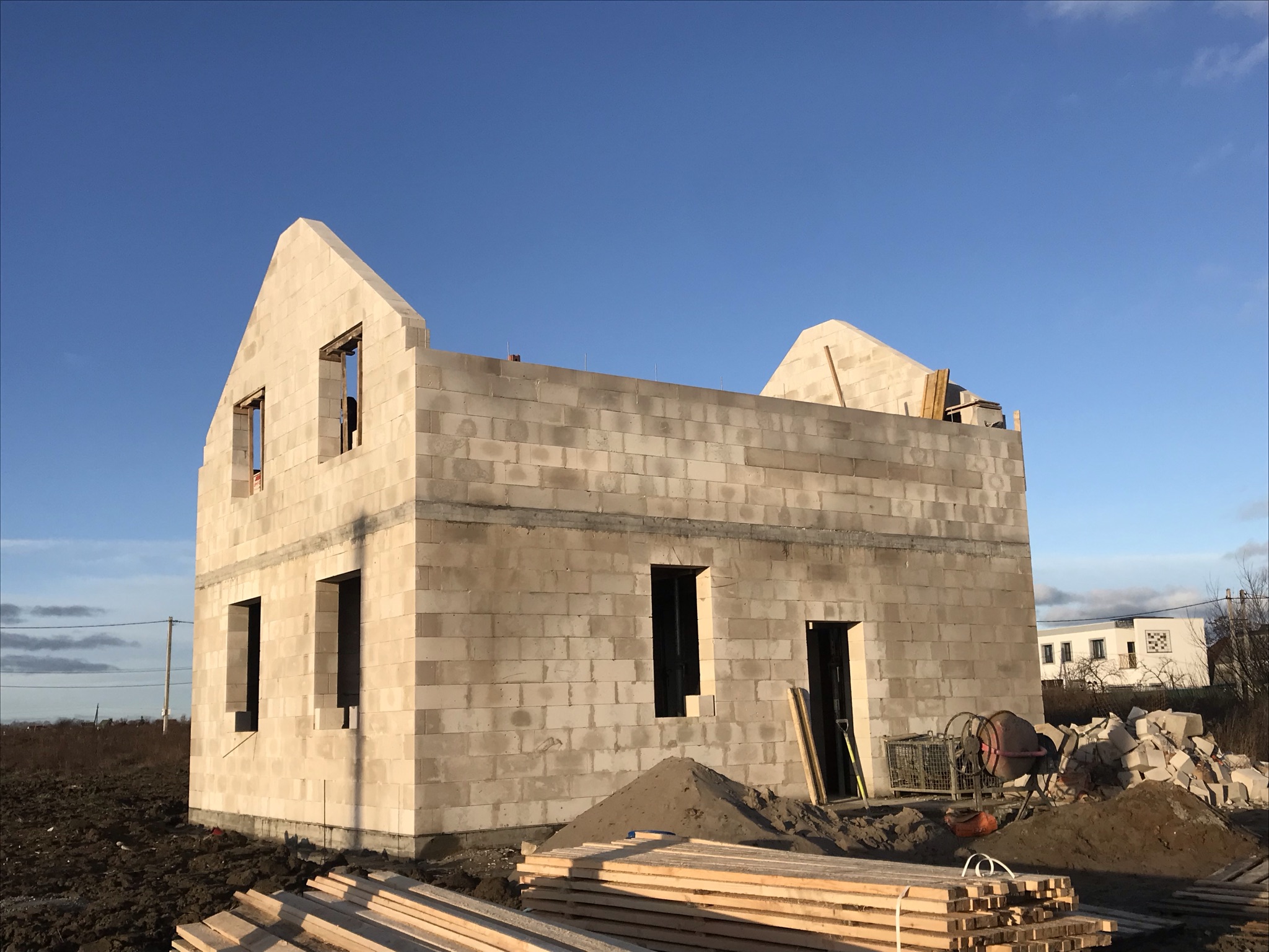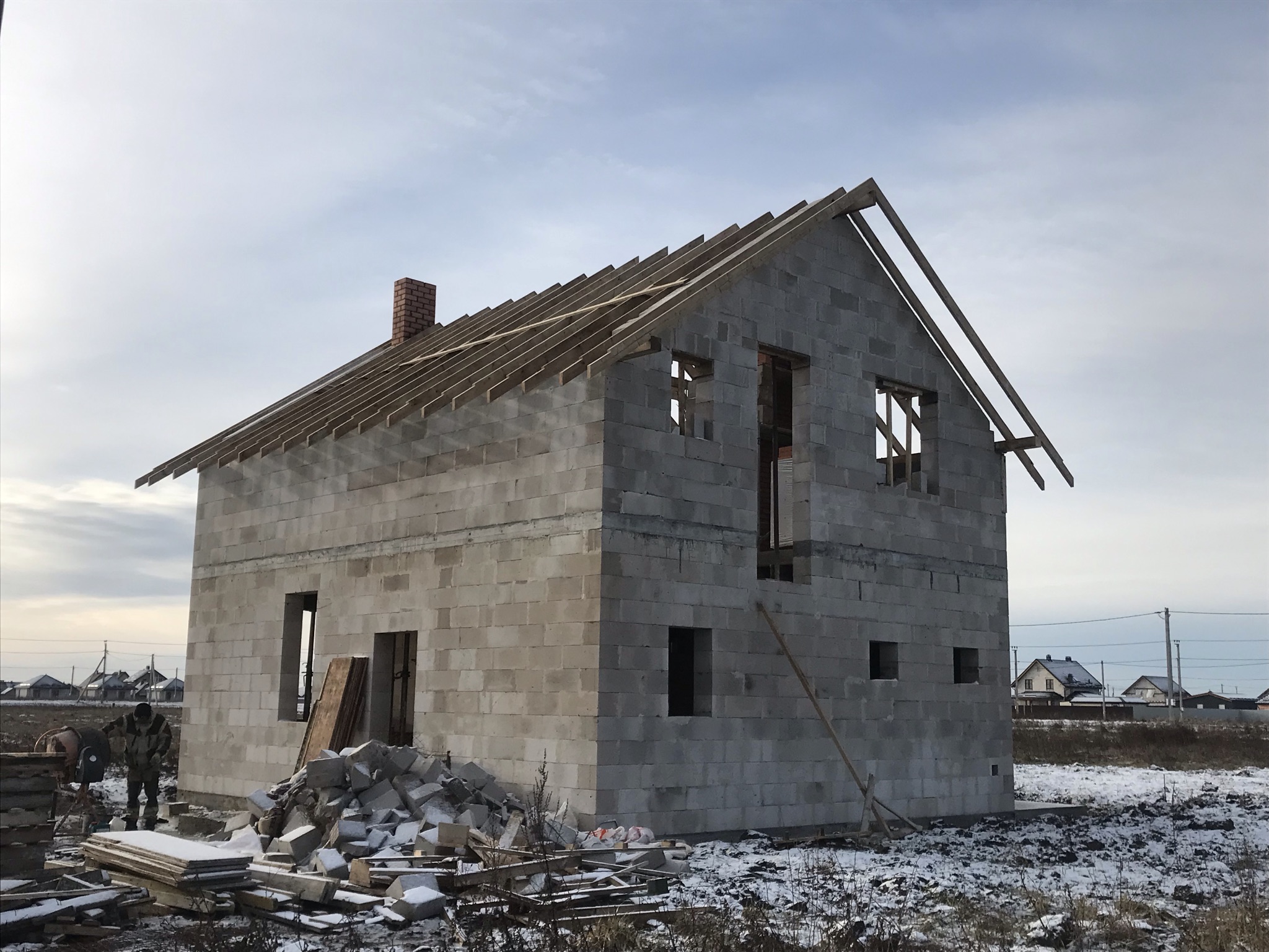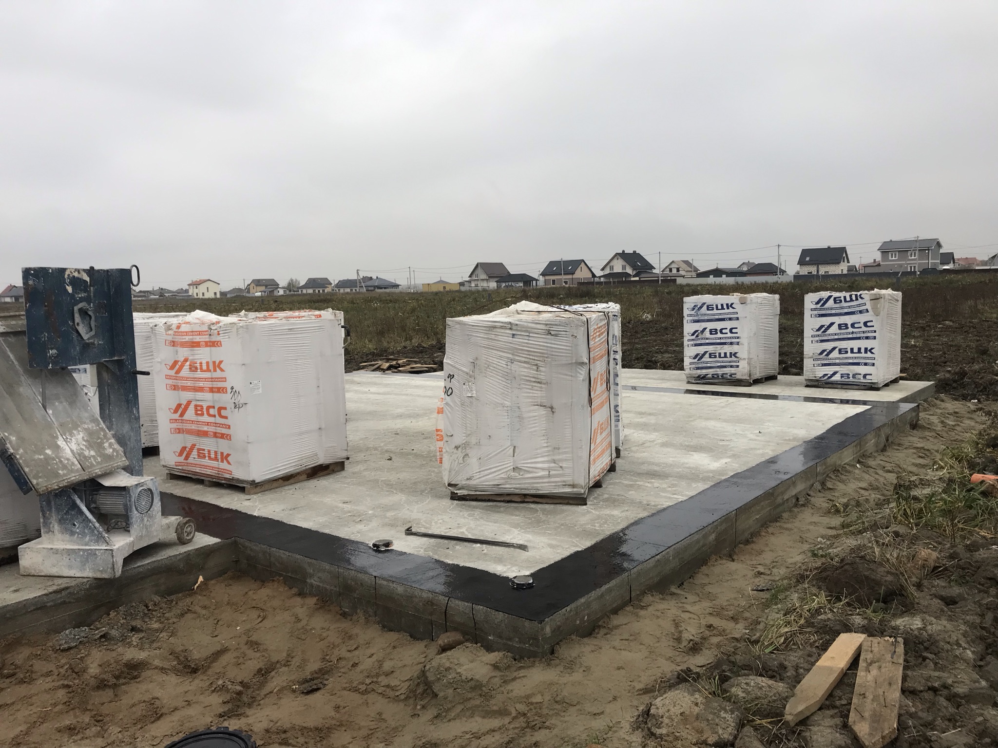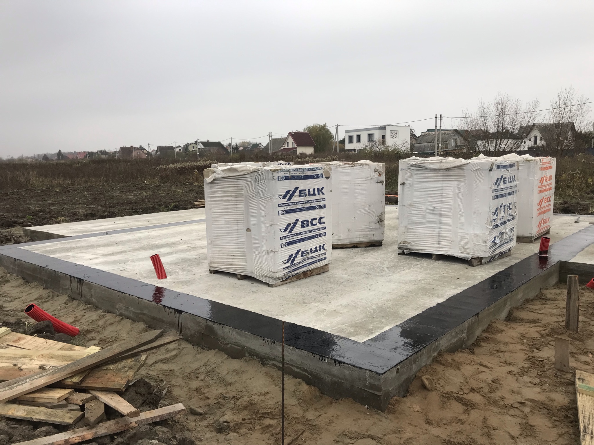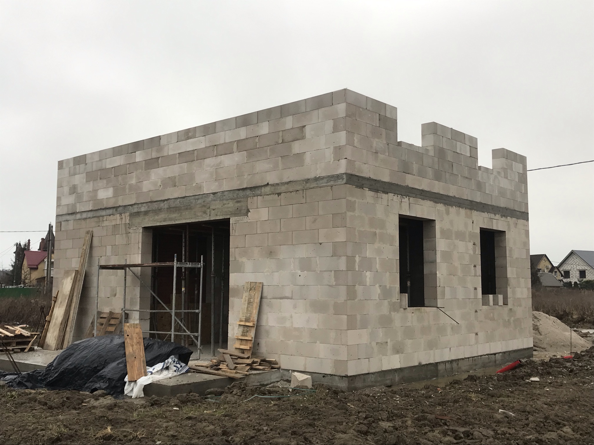 Приступили в межсезонье к строительству небольшого загородного дома в п. Каменка. Фундаментная плита была уже залита, поэтому начали с кладки стен. Закончили строительство "коробки" в конце февраля 2023г. Летом закончили фасад и благоустройство.