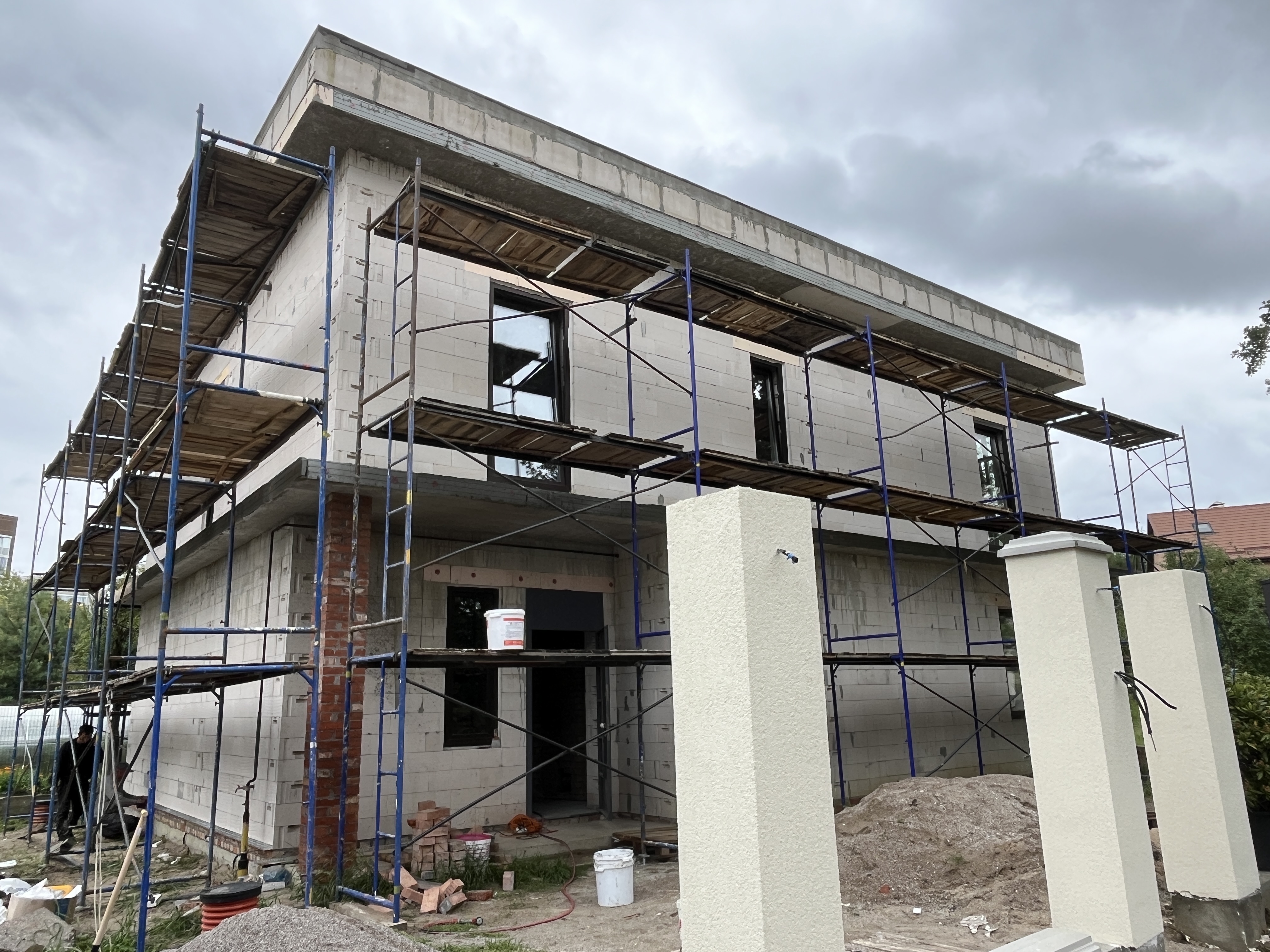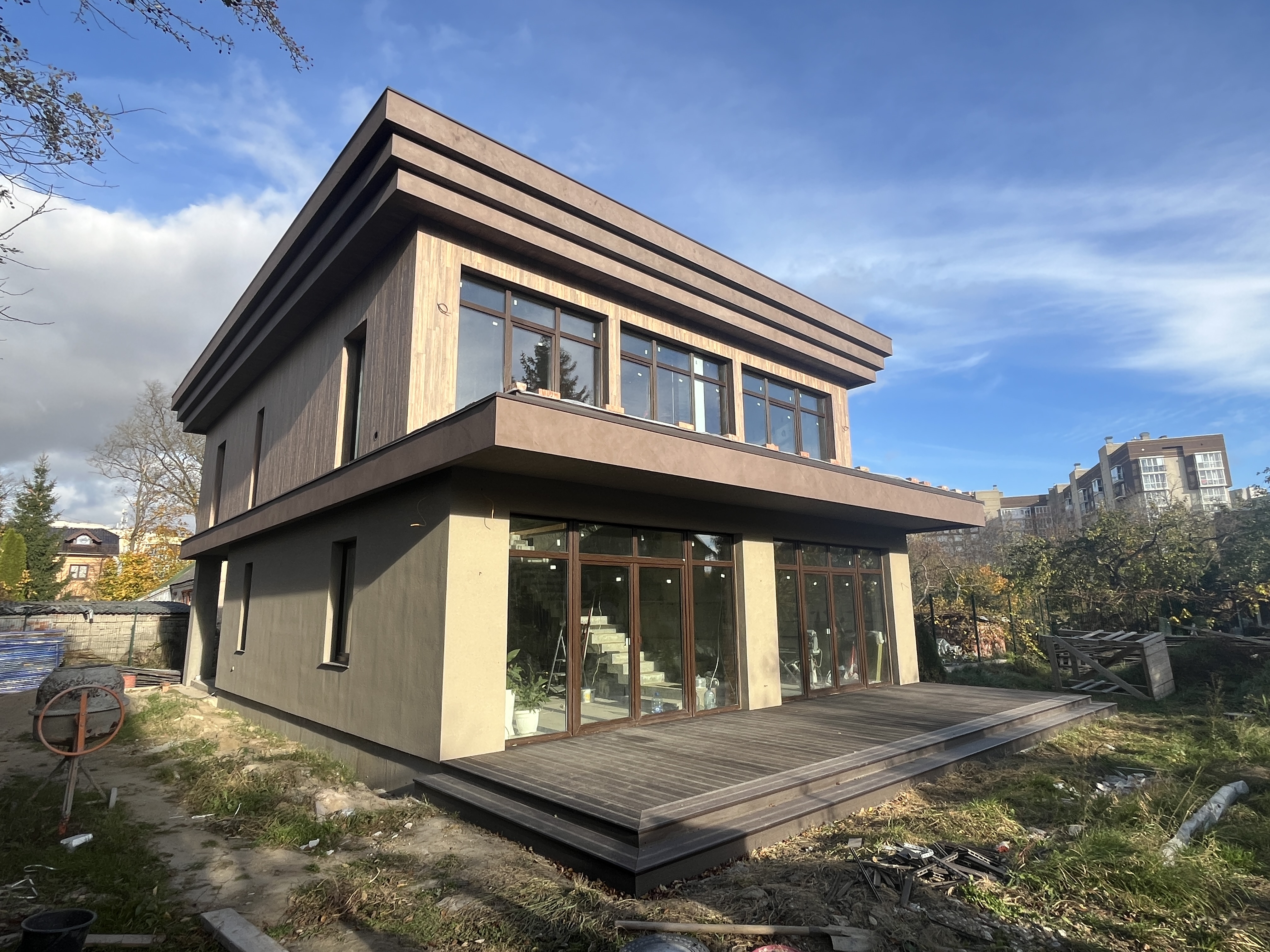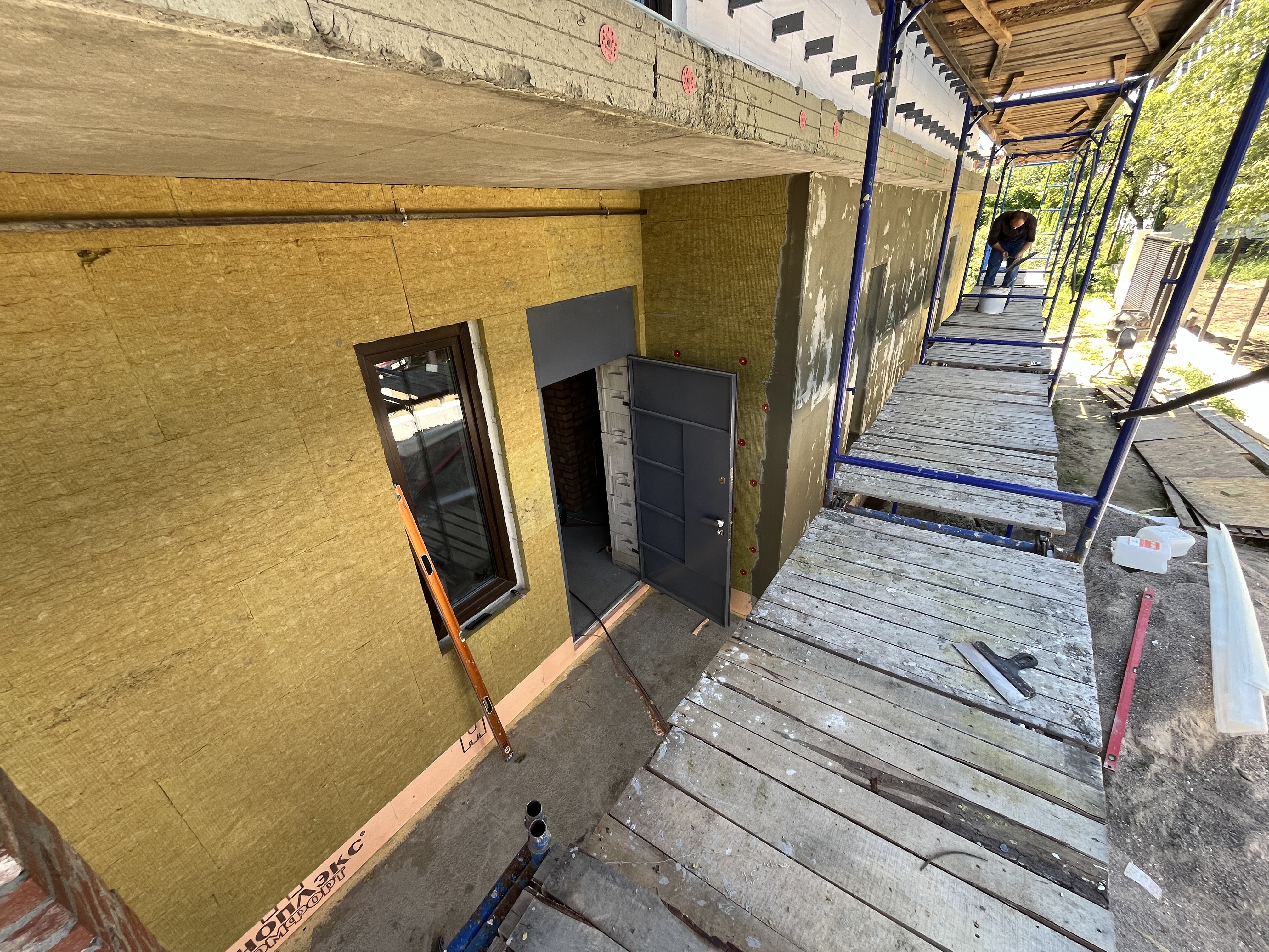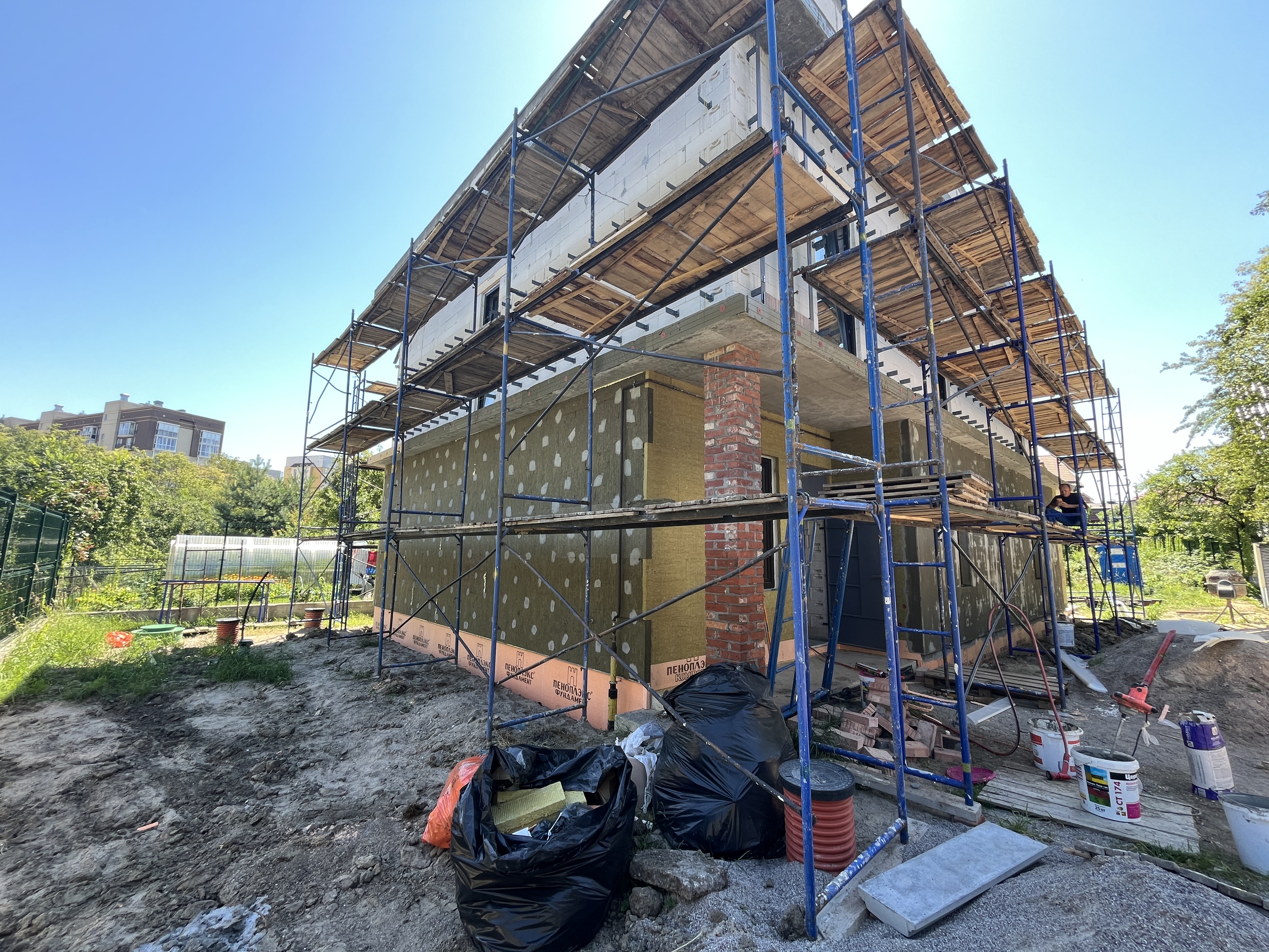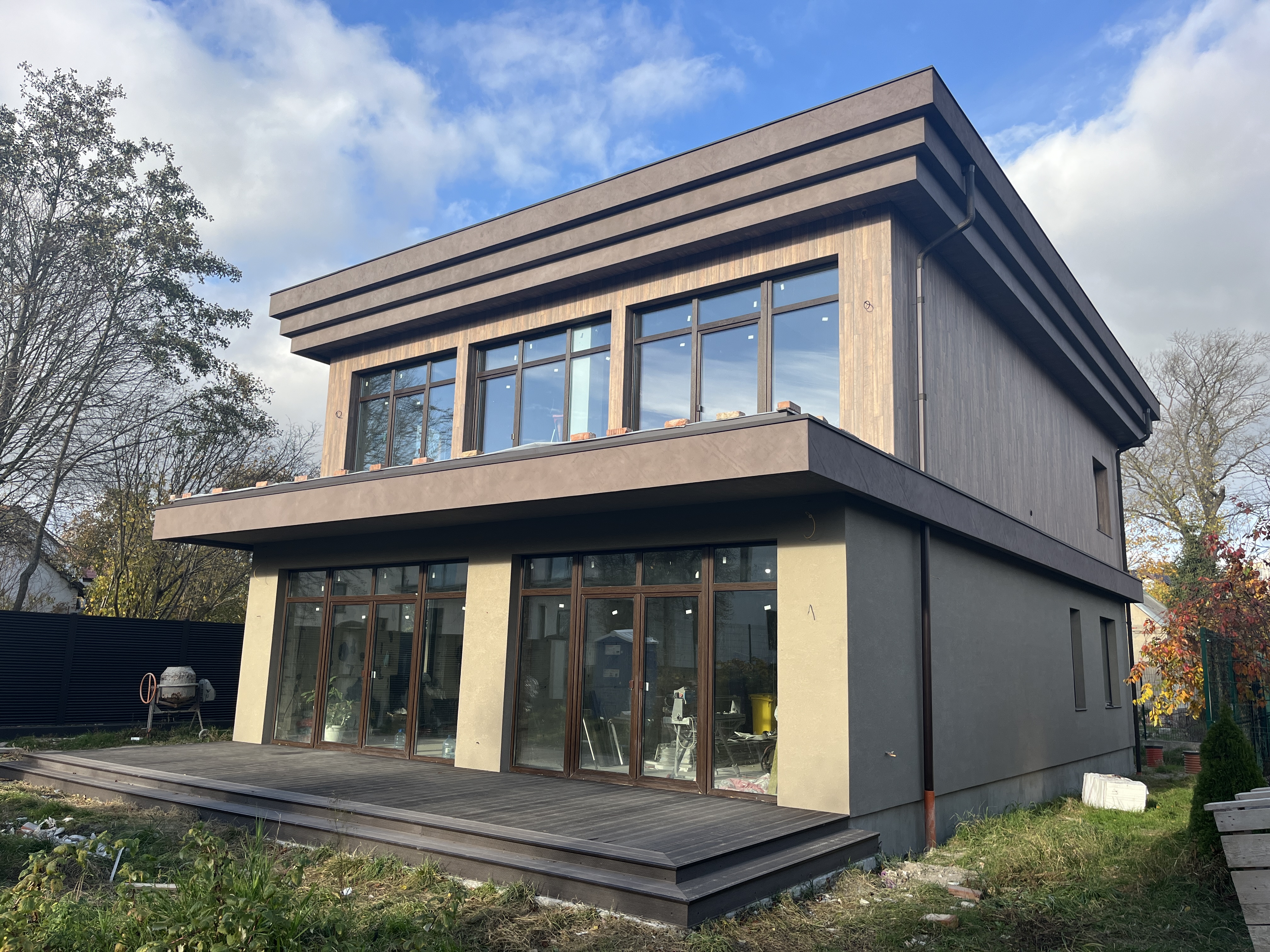 Выполнены фасадные работы в г. Калининграде. Фасад получился комбинированным: первый этаж - "мокрый фасад" в финишном покрытии которого была использована декоративная штукатурка PRATTA, второй этаж - вентилируемый, в основу которого легли фасадные панели Кей Эм Ю (KMEW)