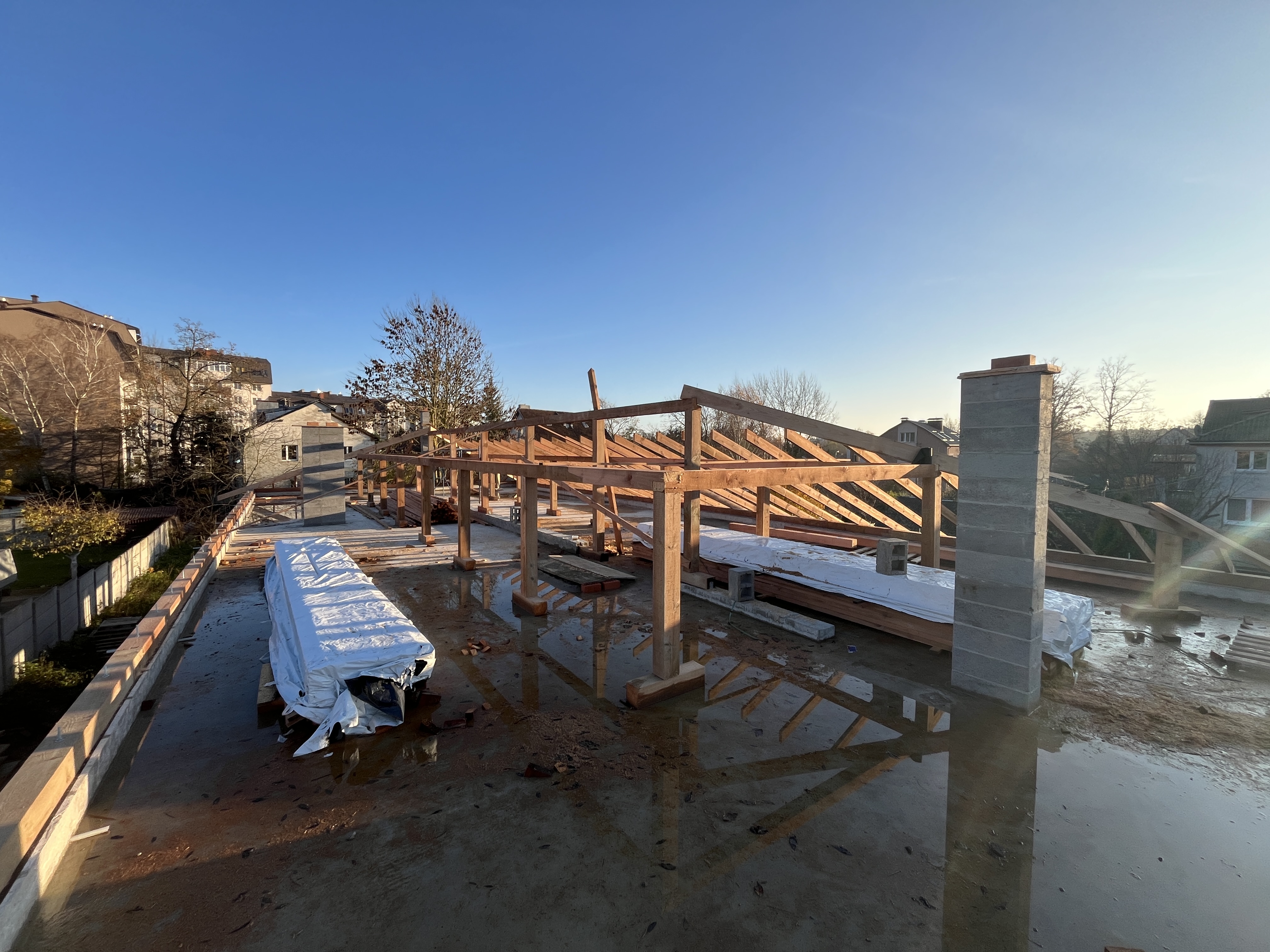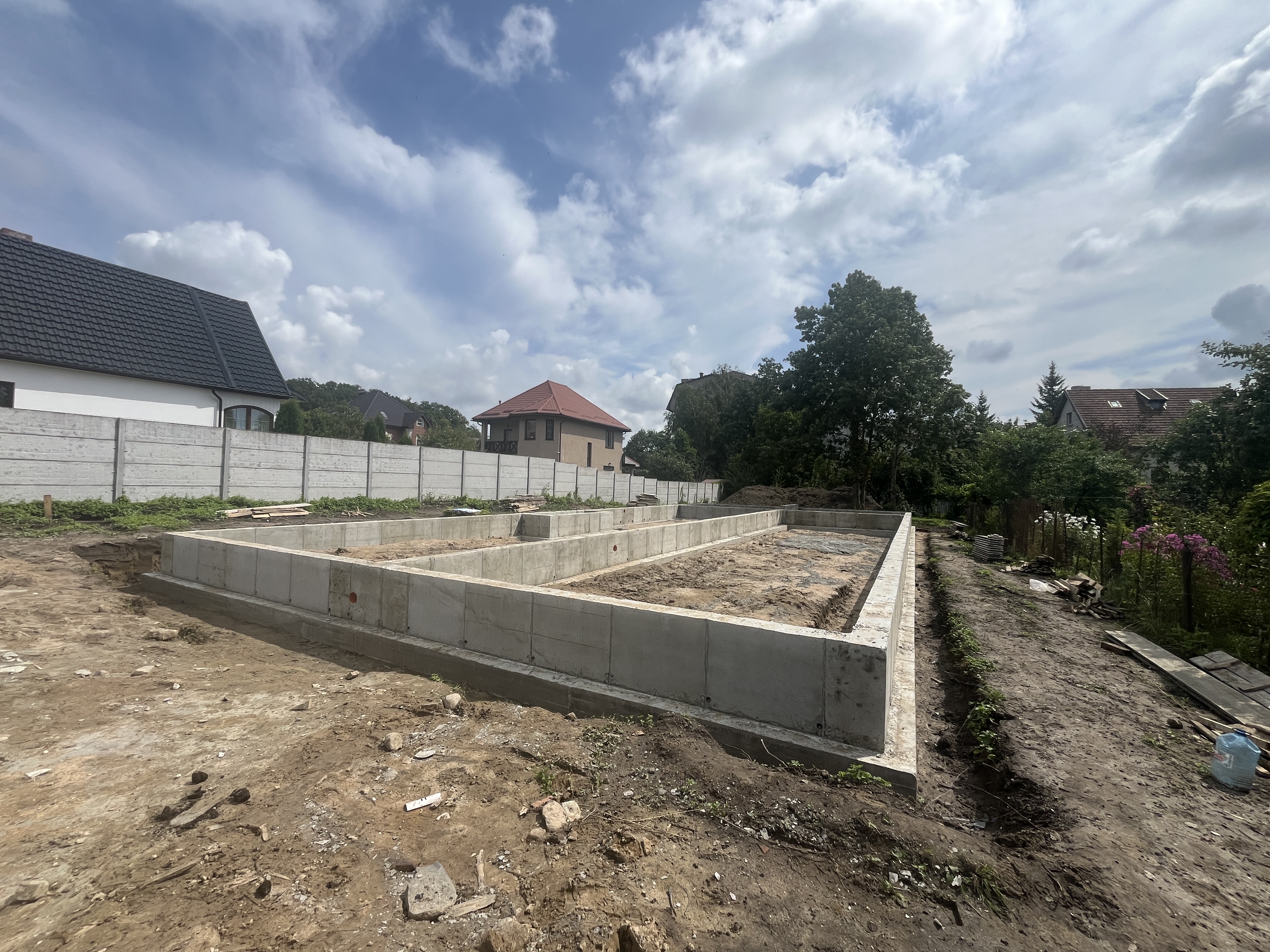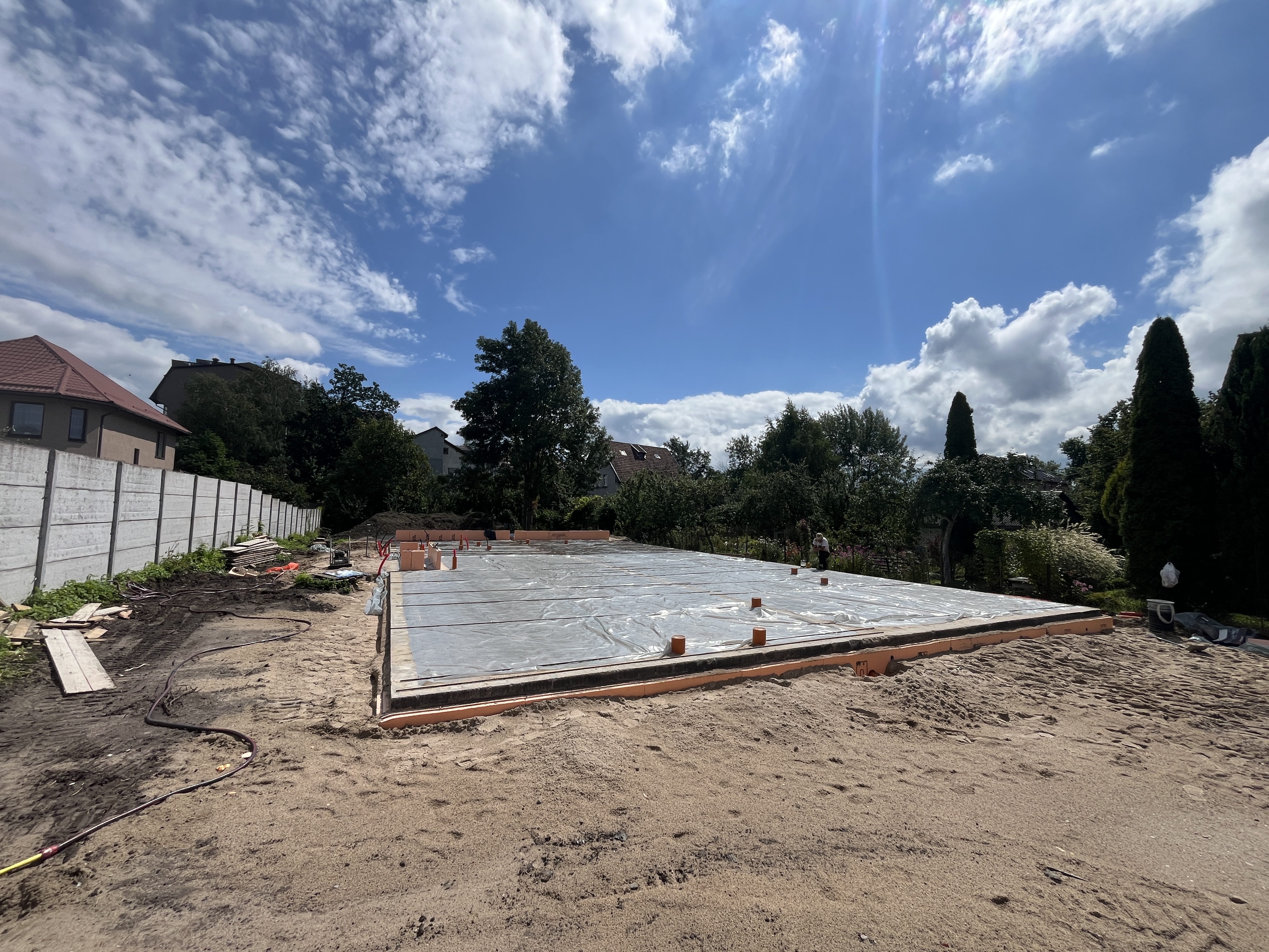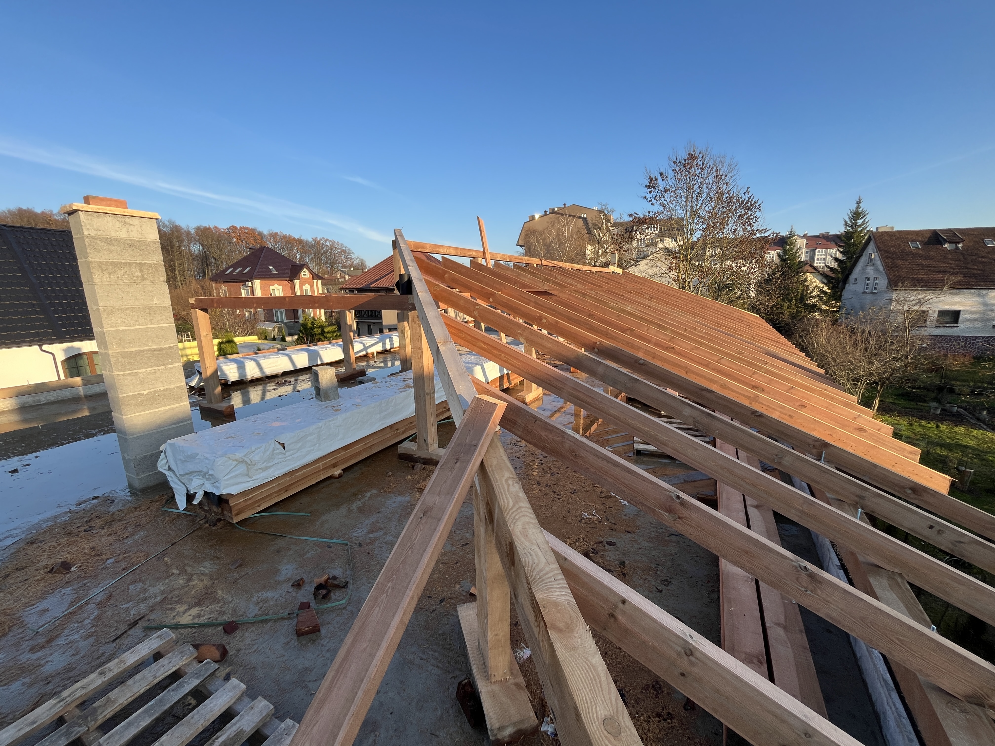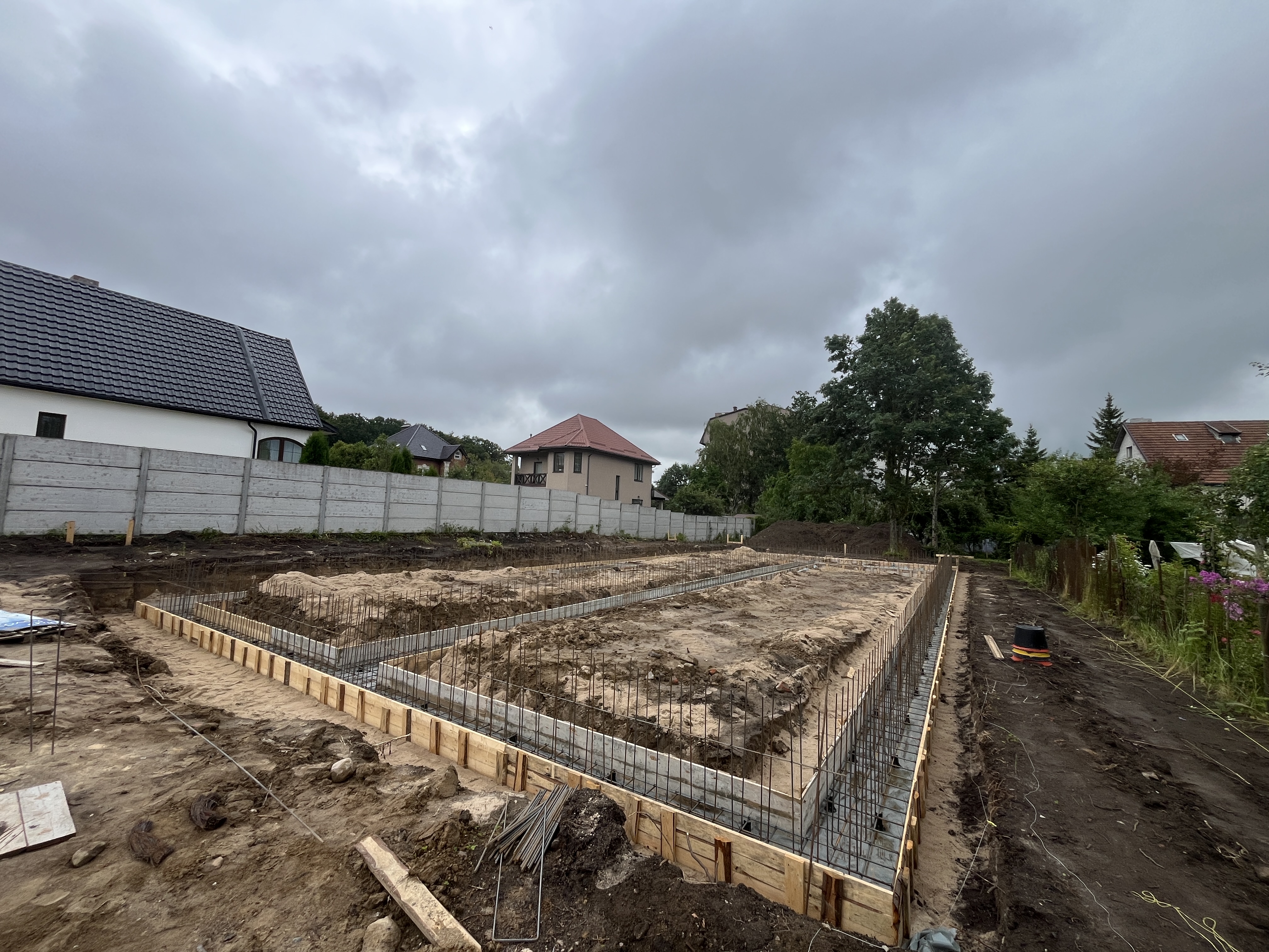 Выполнили строительство одноэтажного дома с большими панарамными окнами, высота потолков 3,7м. Кровля вальмовая, из качественной немецкой керамической черепицы.