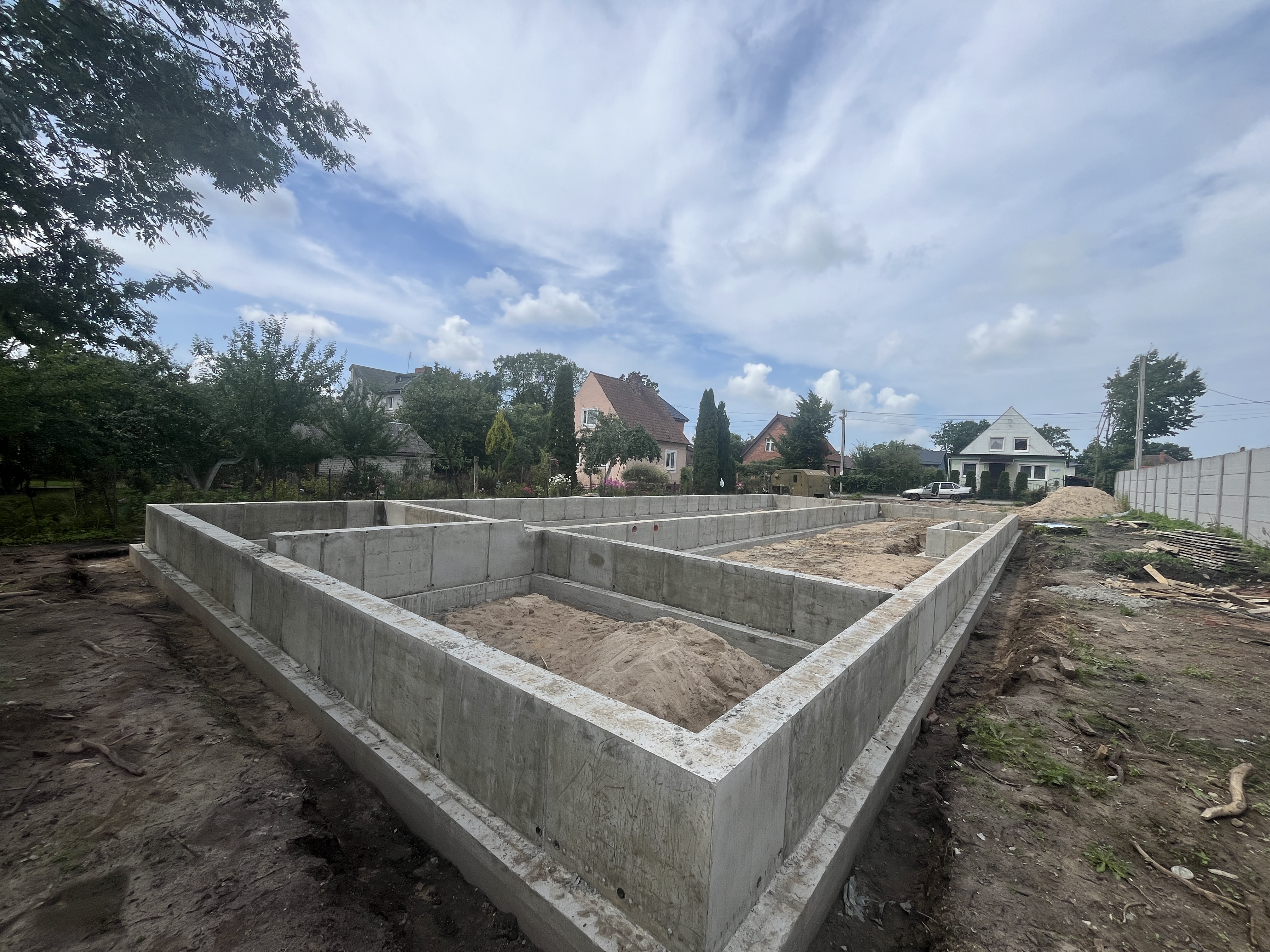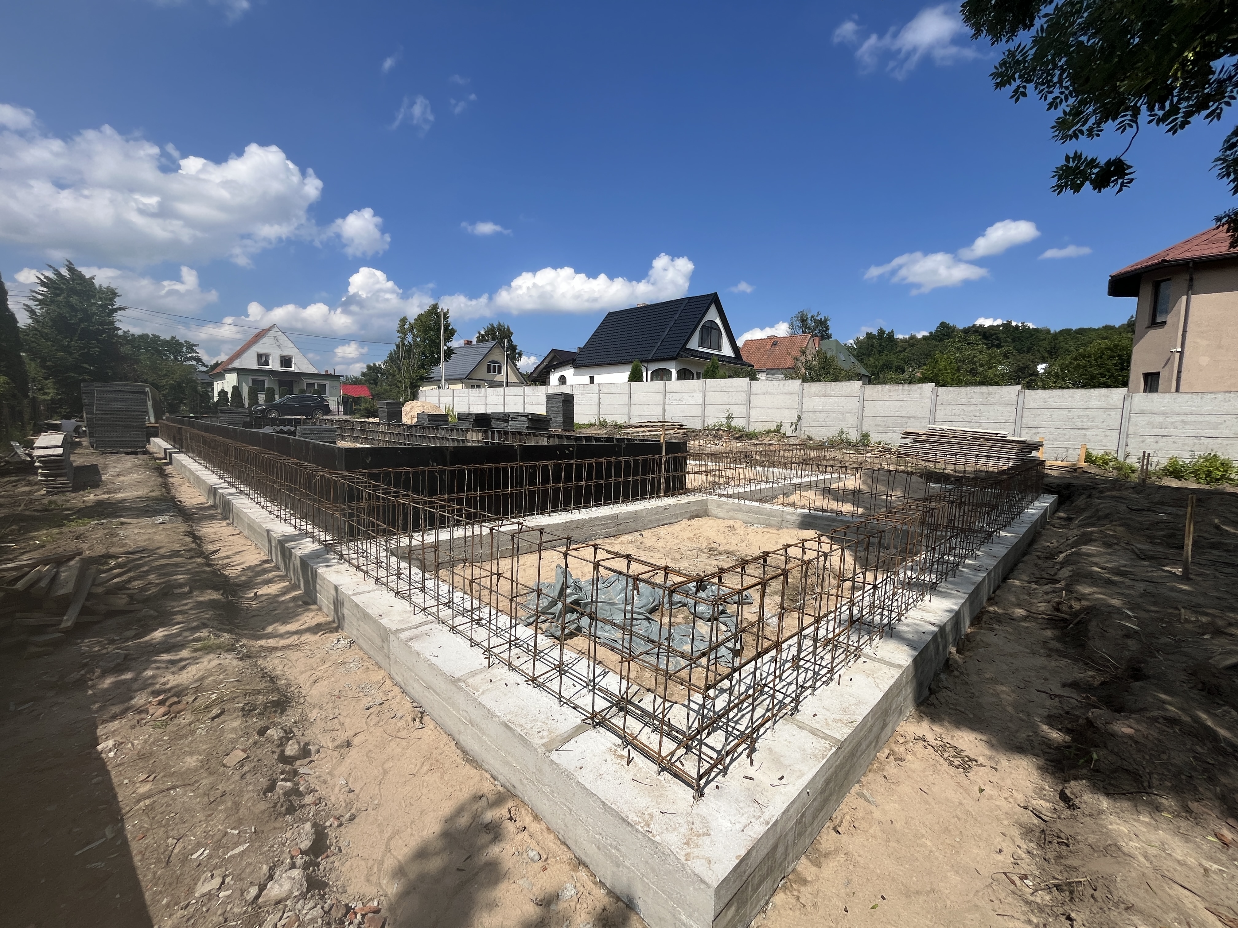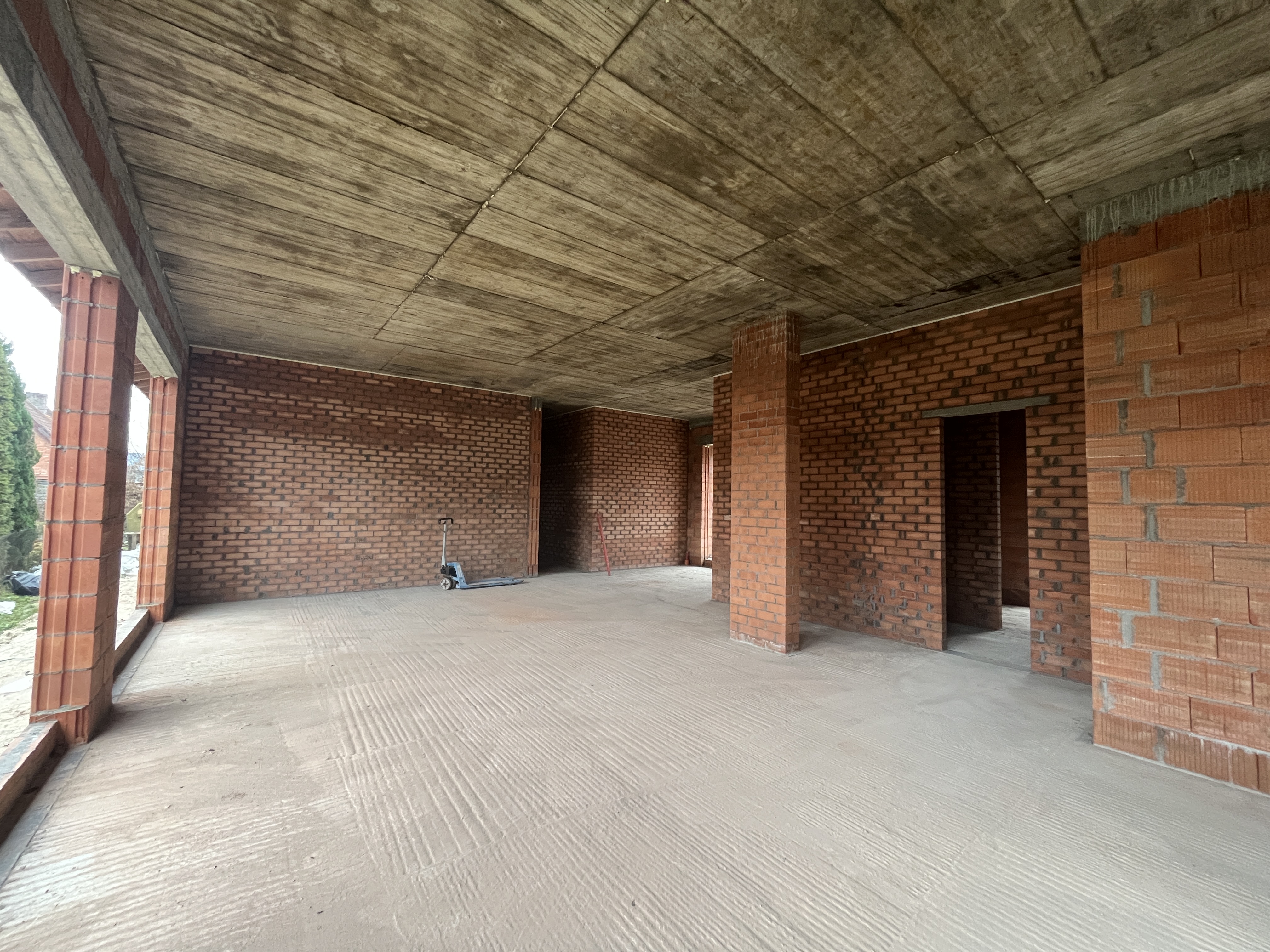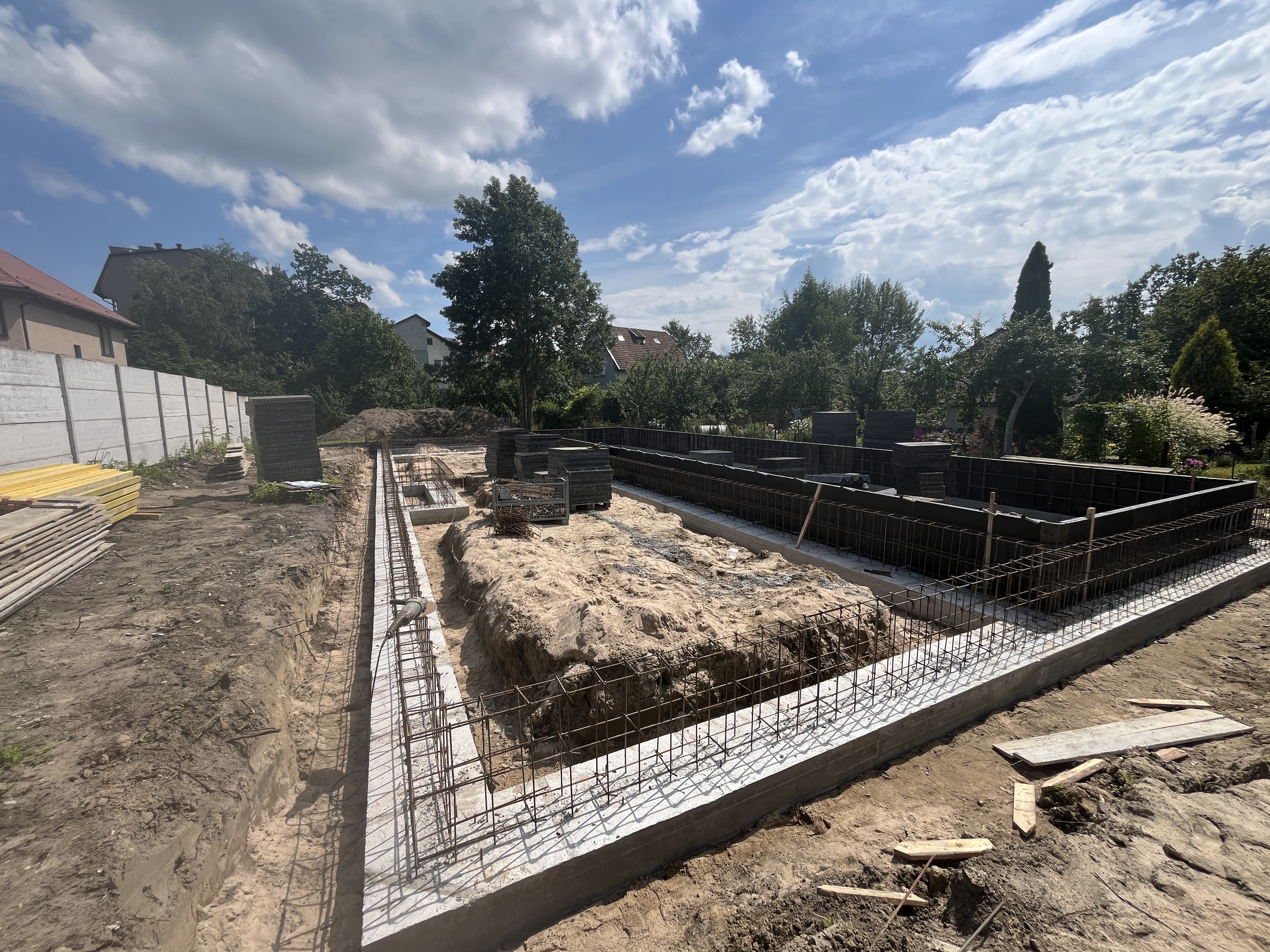Выполнили строительство одноэтажного дома с большими панарамными окнами, высота потолков 3,7м. Кровля вальмовая, из качественной немецкой керамической черепицы.
